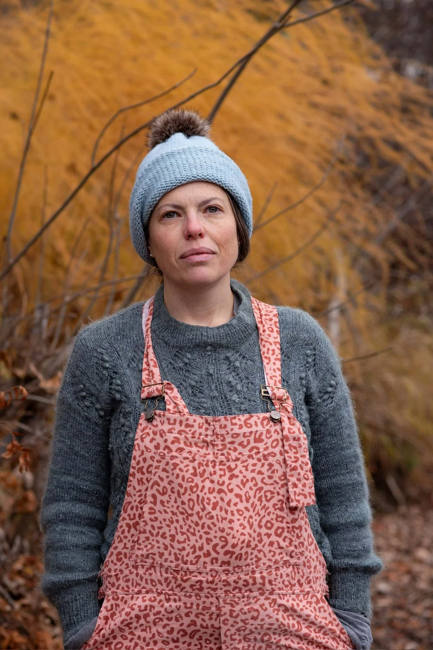 We walked down to the edge of the river, navigated a beached dock. As she prepared for a cold plunge, a rogue asparagus plant provided a unique backdrop for a portrait. I stopped her when I saw the colours and asked if I could capture a photo or two. I was meant to capture her knitted creations and in that moment had forgotten that element - however, she told me that everything she was wearing that day was made by her! (sweater, overalls, scarf, bathing suit!)